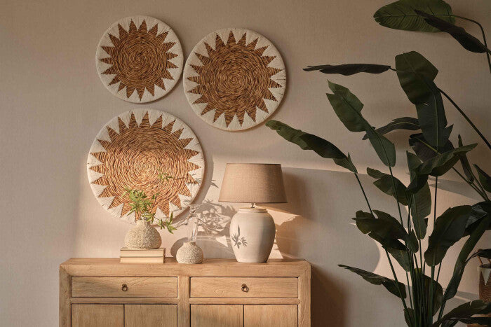 Szafka bufetowa o wyglądzie naturalnego drewna szczególnie dobrze komponuje się z ciepłymi odcieniami ziemi, takimi jak beż, brąz i terakota. Elegancki charakter mebli podkreślają także kontrasty z czernią, ciemną zielenią czy granatem.