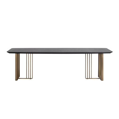 Der Esstisch Maverick von Alexander Jones ist ein Statement für stilvolles Beisammensein. Mit bis zu drei Metern Länge bietet er großzügig Platz für Familie und Gäste. Die Kombination aus schwarzem Eichenfurnier und filigranen Edelstahlbeinen im Liniendesign verleiht dem Tisch eine luxuriöse Leichtigkeit. Die ovale Form mit geraden Enden ist nicht nur optisch spannend, sondern auch besonders einladend – perfekt für lange Dinner-Abende in stilvollem Ambiente.