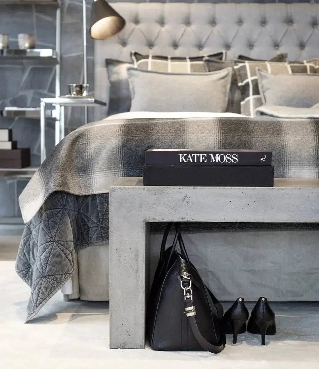 The furniture is mainly made of natural materials such as granite flour, cement, natural jute fibers, and water. The concrete is porous and when finished, the product is treated with a wax to provide active protection against stains. Color variations may occur. The concrete is cast by hand and the thickness can be somewhat different. Therefore, the height can vary a little bit for the same furniture.