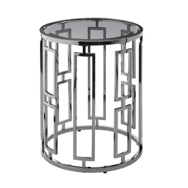 Hazenkamp Beistelltisch Tisch Valentin Schwarzes Glas mit silbernen Beinen