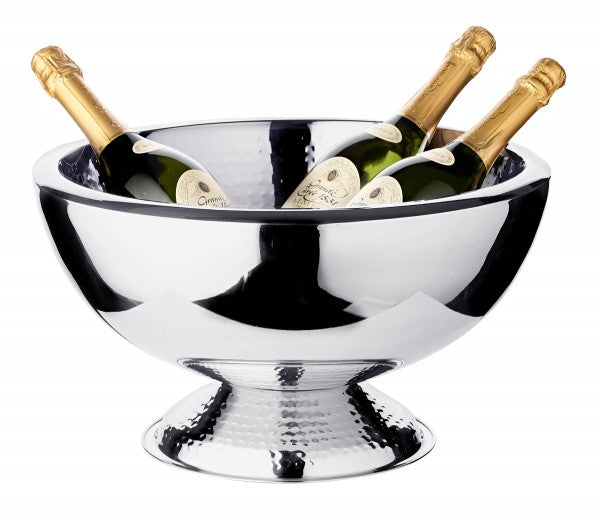Edzard Toni Champagnerkühler, doppelwandig, Edelstahl hochglanzpoliert, Innen und Fuß gehämmert, ø 43 cm