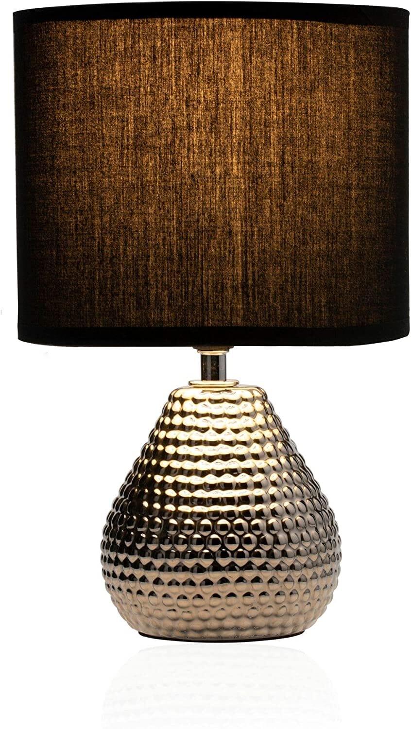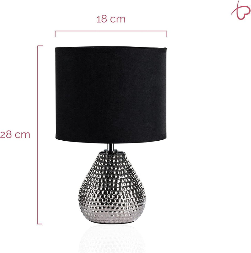 Design Tischlampe Tischleuchte Nachttischlampe Silber Schwarz Keramik/Stoff - E14