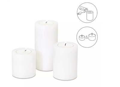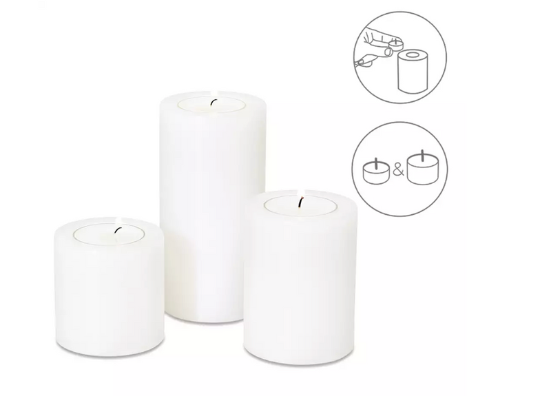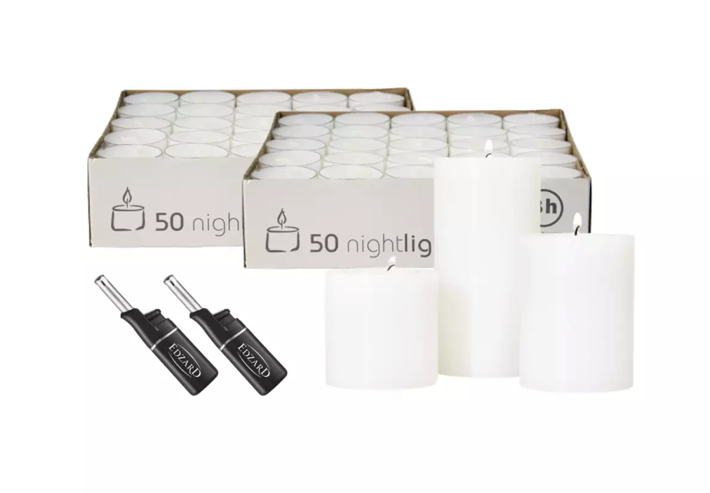 Edzard 3er-Set Dauerkerze Cornelius (Höhe 6/8/10 cm, ø 6 cm), inkl. 96 Teelichter und 2 Stabfeuerzeuge-Stil-Ambiente-Set25