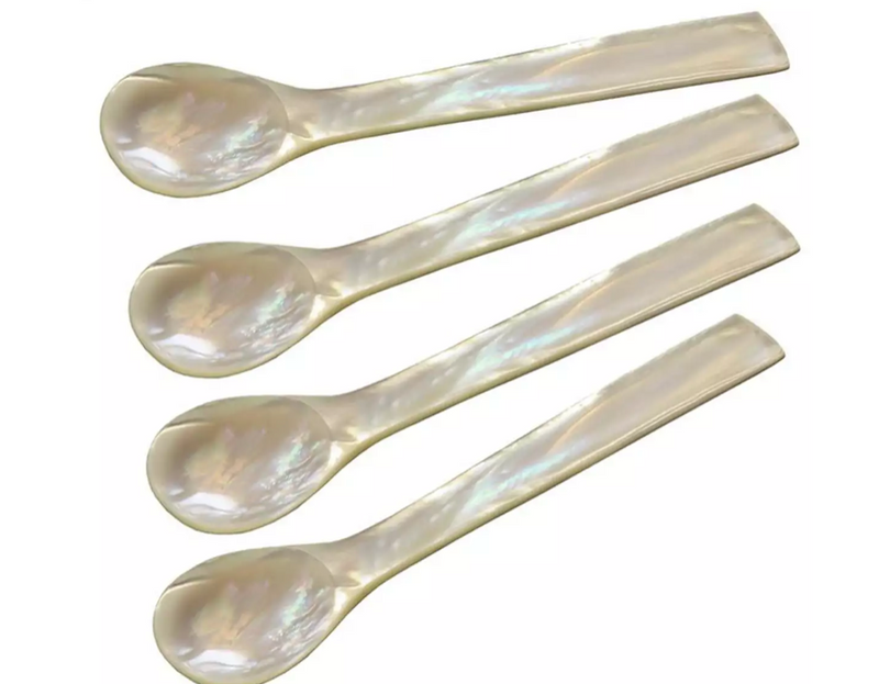 Edzard 4er-Set Eierlöffel Perlmutt (eckige Enden, Länge 11 cm), Handarbeit, Naturprodukt, Ei & Kaviarlöffel
