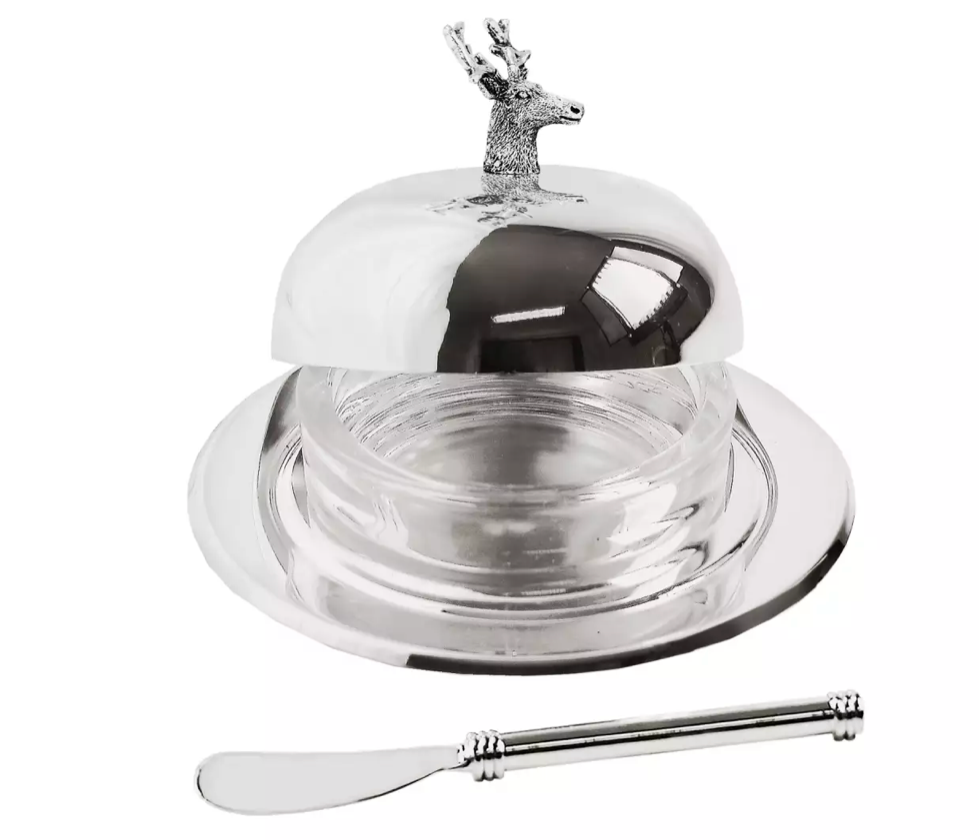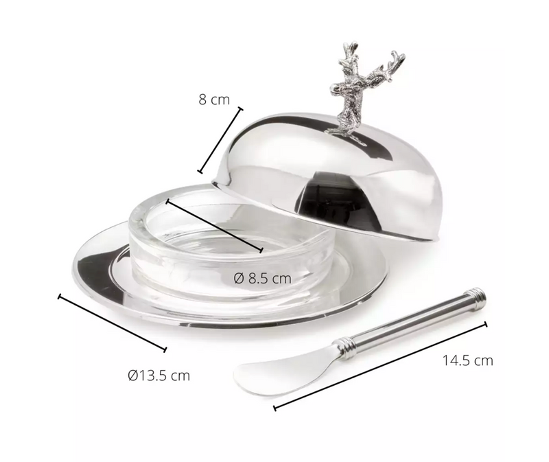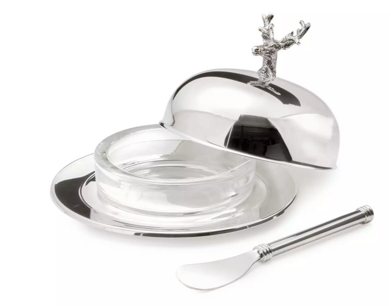 Edzard Butterglocke Hirsch (130 g Butter), Hirsch-Figur, edel versilbert, mit Glasschale & Buttermesser*