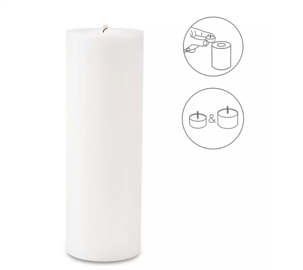 ✓ BEIDSEITIG AUFSTELLBAR: Die Kerze lässt sich auf zwei Seiten aufstellen - dabei ist die Vertiefung für das Teelicht auf beiden Seiten unterschiedlich, damit die Kerze für handelsübliche Maxi-Teelichter sowie für höhere dekorativere Maxi-Acrylteelichter (durchsichtige Hülle) verwendet werden kann.