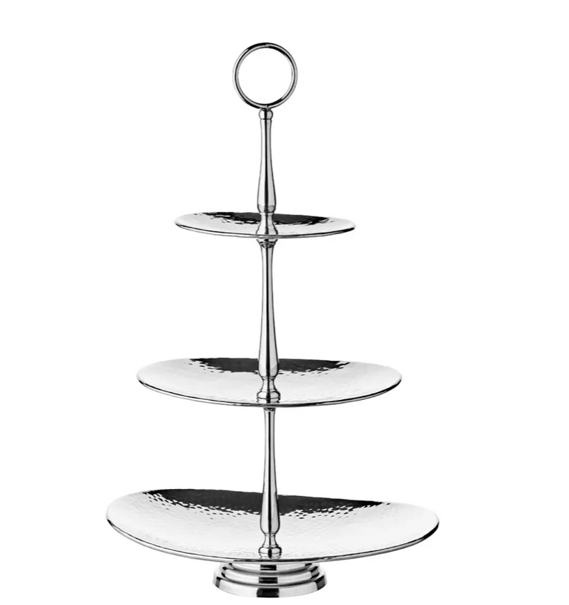 Edzard Etagere Gulf (Höhe 49 cm, 3-stöckig), oval, Edelstahl, gehämmert, hochglanzpoliert