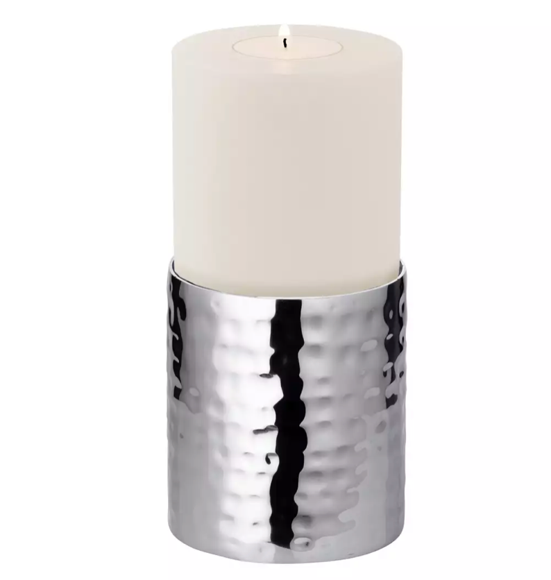 ✔ IHRE VORTEILE: Kerzenleuchter Agadir Ø 8,5 cm | Höhe 10 cm | Hochglanzpolierter Edelstahl | Gehämmerte Silber-Optik | Dauerkerze Cornelius Ø 8 cm | Robuster Kunststoff mit Wachs-Optik| Bis zu 105° hitzeresistent | Spülmaschinenfest