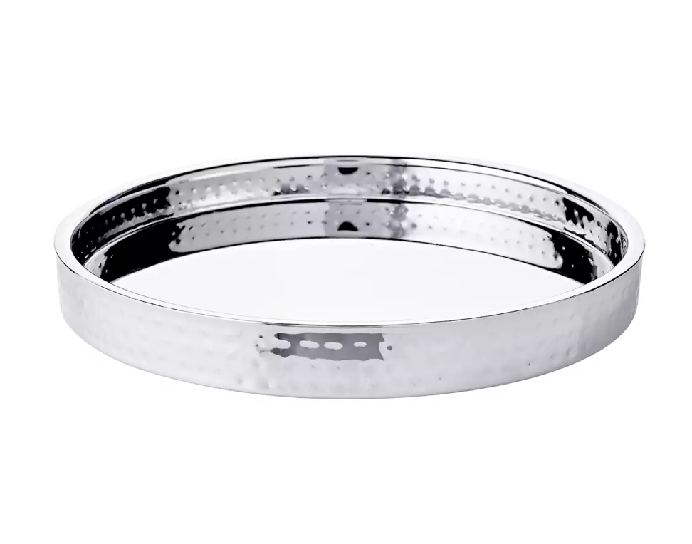 Edzard Tablett Alaska (ø 32 cm) rund, Edelstahl gehämmert hochglanzpoliert, Serviertablett, Dekotablett