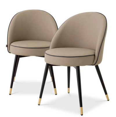 Geben Sie Ihrem Esszimmer oder Ihrer Küche mit dem stilvollen Eichholtz Esszimmerstuhl Cooper 2er-Set einen modernen Look. Jeder Stuhl ist mit einem Samtpolster in Beige sowie konischen schwarzen Beinen mit Messingkappen ausgestattet. Kombinieren Sie verschiedene Stühle dieser Serie, um einen opulenten Stil zu kreieren!