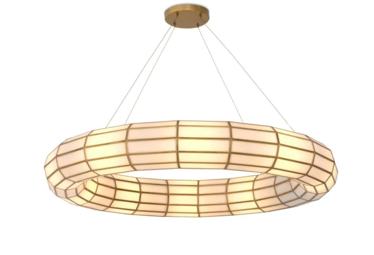Erheben Sie Ihr Interieur mit der ikonischen Eichholtz Hängelampe Ronco, der Luxus und präzise Handwerkskunst verkörpert. Das markante antike Messing-Finish und die handgefertigten Glaspaneele dieses Deckenleuchters schaffen eine ruhige Atmosphäre in jedem Raum. Mit einem Durchmesser von 120 cm und einer Höhe von 16 cm fügt sich dieser Kronleuchter perfekt in Ihr Zuhause ein und ergänzt nahtlos die Lifestyle-Kollektion von Eichholtz.