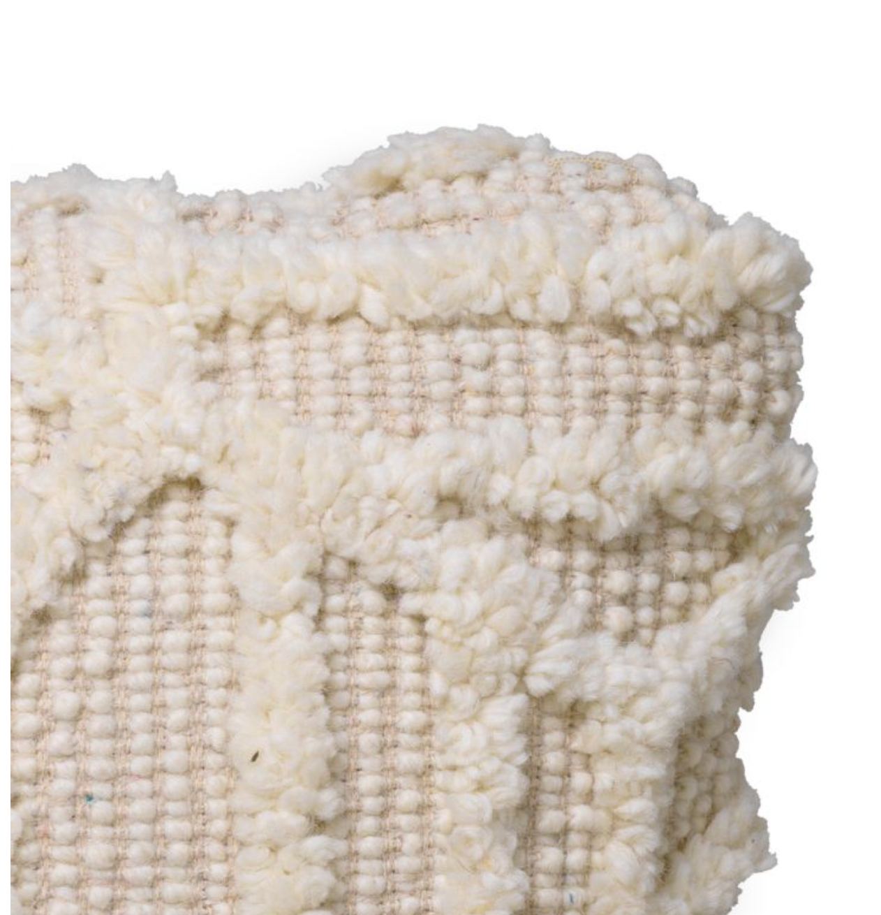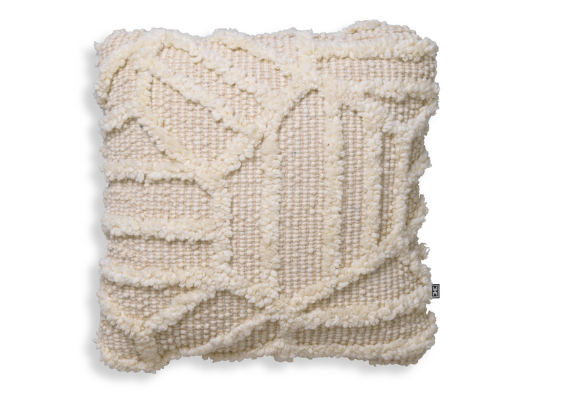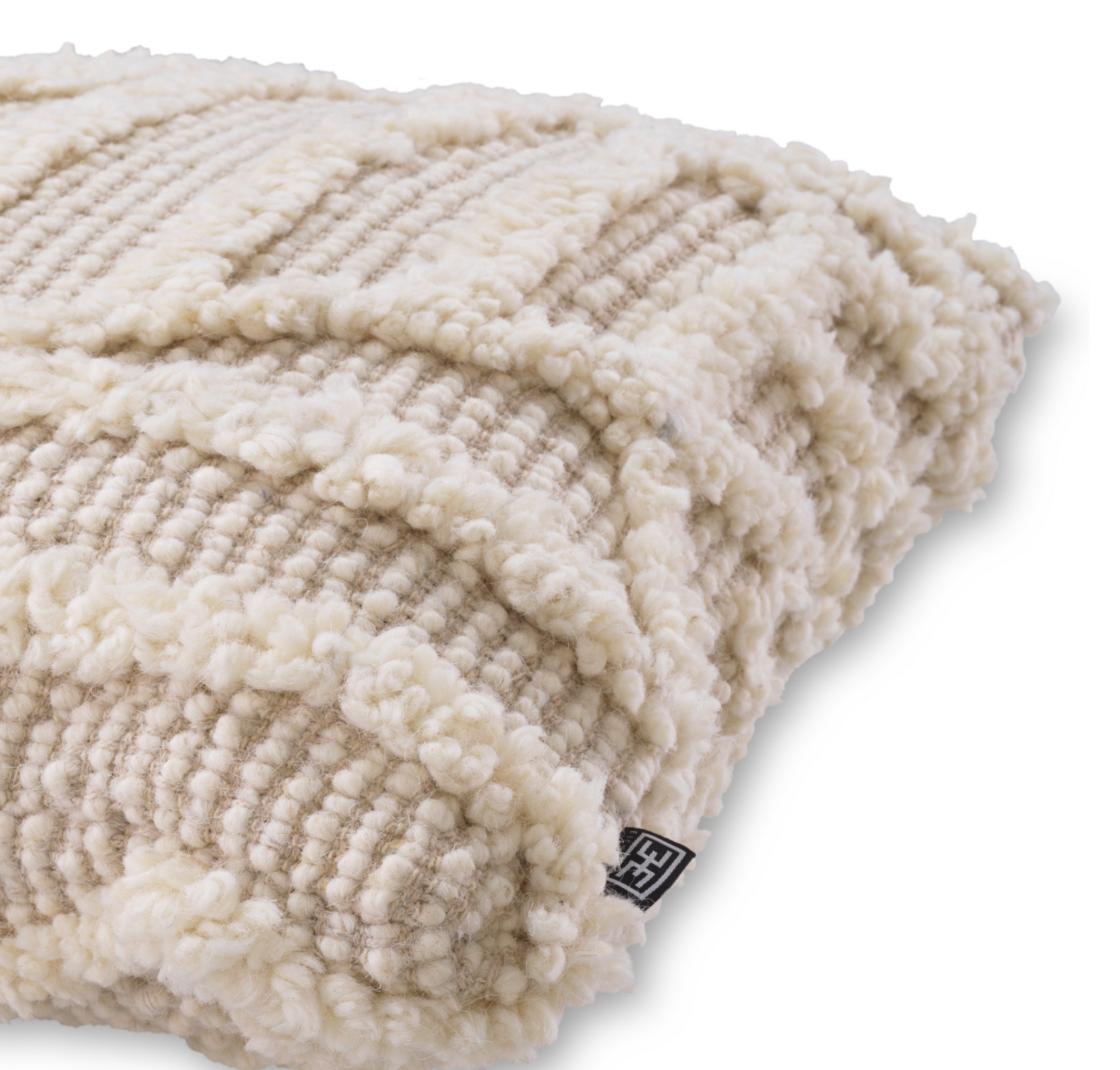 "Machen Sie es sich gemütlich mit dem 'Kissen SAN JUAN S', Ihrem neuen handgewebten Wohnaccessoire in schickem Elfenbein. Aus 90% Wolle gefertigt, bietet es Komfort und Stil für Ihr Interieur."