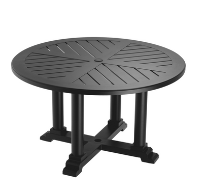 Entdecken Sie den "Outdoor Esstisch BELL RIVE S" – ein Meisterwerk der Eleganz für Ihren Außenbereich. Dieser runde Tisch mit schwarzem Finish schafft den perfekten Rahmen für gemeinsame Stunden unter freiem Himmel.