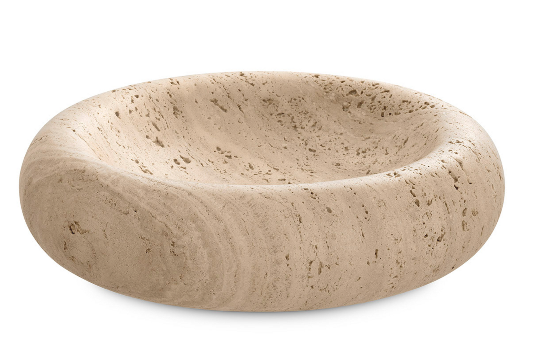 "Die Schale Lizz L aus Travertin ist ein beeindruckendes Stück für Ihr Zuhause. Mit ihrem großzügigen Durchmesser und ihrer soliden Höhe eignet sich diese Schale perfekt für den Einsatz als stilvolles Dekorationsstück oder als funktionale Schale für Obst, Knabbereien und mehr. Verleihen Sie Ihrem Wohnraum mit dieser eleganten Schale eine natürliche Note."