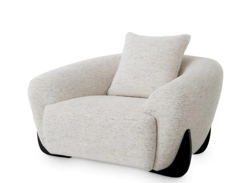 Verleihen Sie Ihrem Interieur mit dem eleganten Eichholtz Sessel Siderno einen Hauch von Luxus. Der Seashell Off-White Stoff und die schicken schwarzen Holzfüße schaffen eine harmonische Verbindung von handwerklicher Kunstfertigkeit und modernem Komfort. Mit Maßen von W. 126 cm, D. 106 cm, H. 73 cm, SD. 52 cm, SH. 46 cm und AH. 57 cm ist dieser Sessel eine stilvolle Bereicherung für jeden Wohnraum.