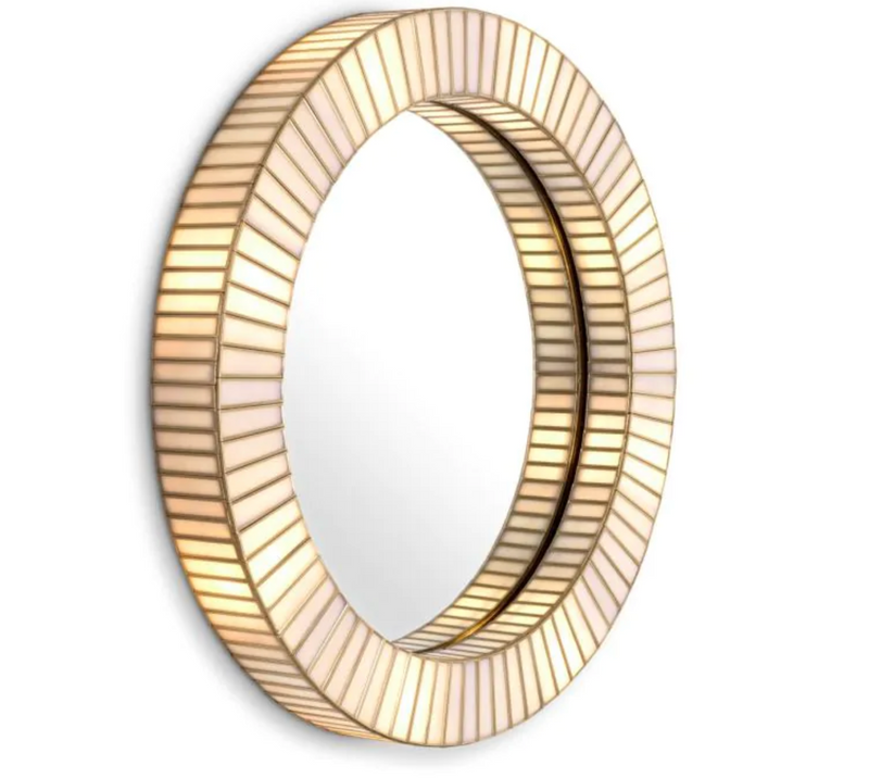 "Verleihen Sie Ihrem Raum Raffinesse und handwerkliches Flair mit dem Monari Wandspiegel von Eichholtz. Das antike Messing-Finish und das exquisite handgefertigte Glas verbinden klassische und zeitgenössische Stile, ideal zur Aufhellung von Wohn- und Schlafzimmern."
