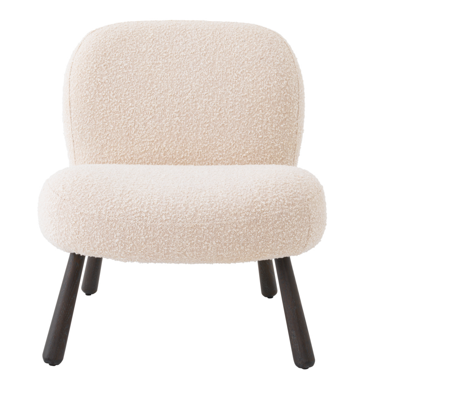 - Material & Farbe: Bouclé Cream Bezug | Braun Beine (81% Polyester, 19% Acryl)