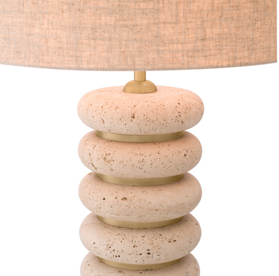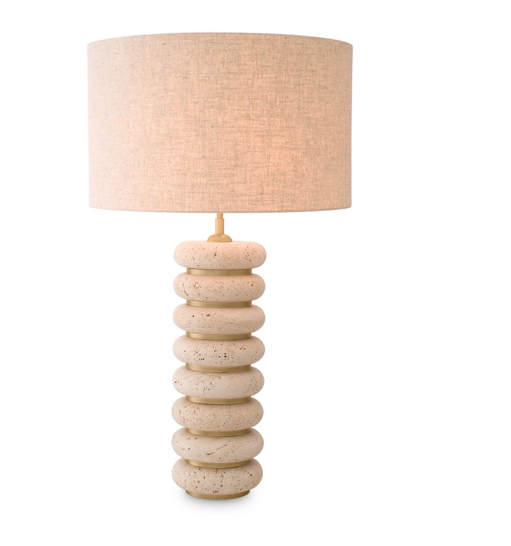 - Material & Farbe: Travertin | Einzigartiges Messing-Finish | Inklusive Leinenmix-Schirm