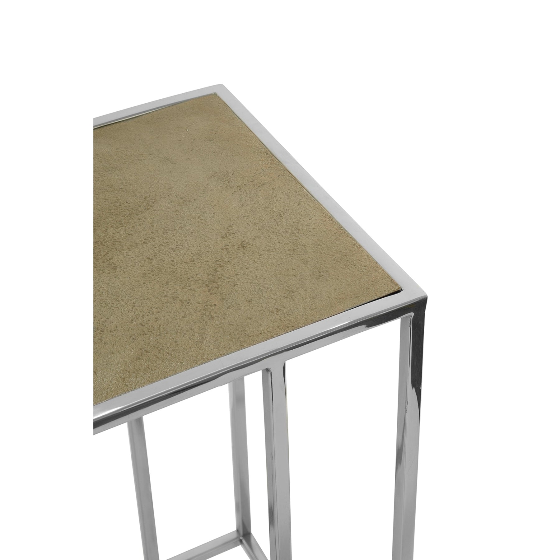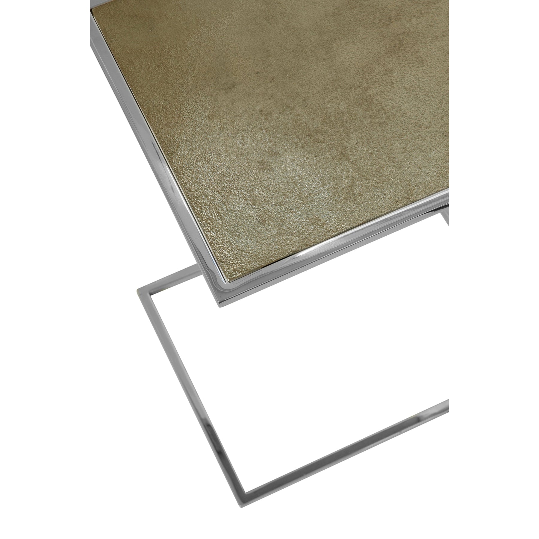 Kleiner Tisch, große Wirkung: Mit dem Beistelltisch DIJON lassen sich schnell neue Akzente in jedem Wohnbereich setzen. Er dient als praktische Ablagefläche oder einfach als dekoratives Wohnaccessoire. Das minimalistische Design verleiht dem Bestelltisch eine besondere Eleganz und lässt ihn besonders in modernen Einrichtungsstilen gut zur Geltung kommen. Jeder einzelne Tisch wird in aufwendiger, traditioneller Handarbeit gefertigt und ist ein individuelles Unikat, das seine ganz eigene Herstellungsgeschichte besitzt. Die metallisch schimmernde Oberfläche ist in zwei Ausführungen erhältlich. Im Zusammenspiel mit dem glänzend polierten Edelstahlgestell entsteht ein aufeinander abgestimmtes Design mit gradliniger Formensprache