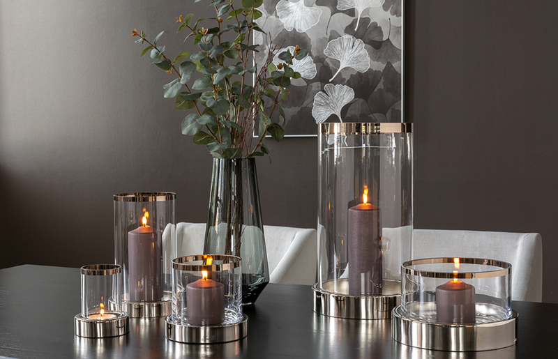 Formschön und vielseitig bieten Ihnen die Windlichter aus der Serie EMPIRE viele Möglichkeiten, Ihrer Kreativität freien Lauf zu lassen. Die unterschiedlichen Größen bieten Platz für Teelichter oder Stumpenkerzen und laden zum Kombinieren ein - so entstehen immer wieder neue Arrangements, die Platz für Ihre kreativen Ideen bieten. Schmücken Sie die Windlichter mit floraler Dekoration oder und lassen sie ihre schlichte Schönheit nur mit Kerzen zur Geltung kommen. Der glänzend vernickelte Fuß und das hochwertige Glas lassen diese Wohnaccessoires auch höchsten Qualitätsansprüchen gerecht werden.
