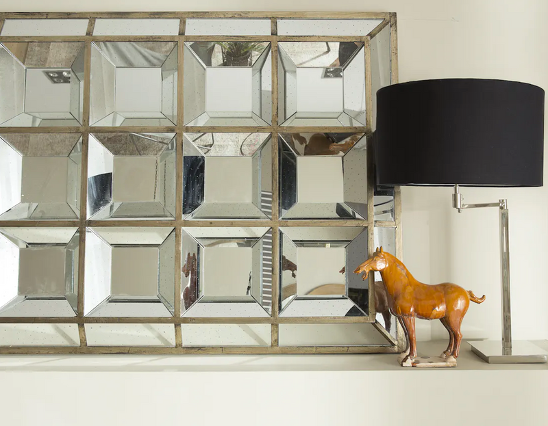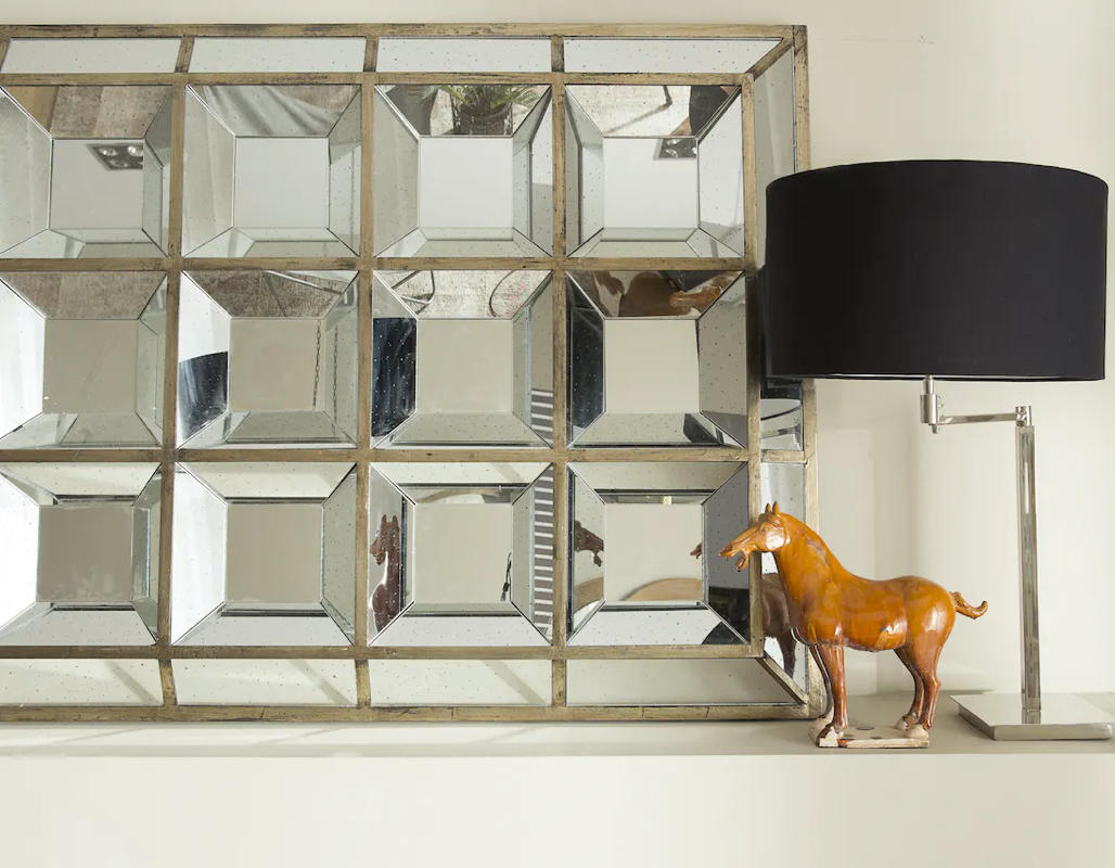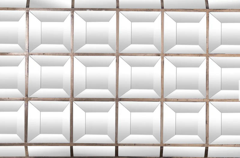 Dieser große, wandfüllende Spiegel besticht durch seinen speziellen Facettenschliff in den 18 quadratischen Elementen, der eine faszinierende Tiefenwirkung erzeugt. Am besten zur Geltung kommt der Spiegel als Wanddeko. Er kann mit einem breiten Wandtisch im klassischen oder modernen Stil kombiniert werden. Hängen Sie Javier in Ihren Vorraum, um einen räumlichen Effekt zu schaffen, der den Raum doppelt so groß erscheinen lässt. Der Spiegel ist auch ein ideales Wohnaccessoire für industrielle Interieurs.