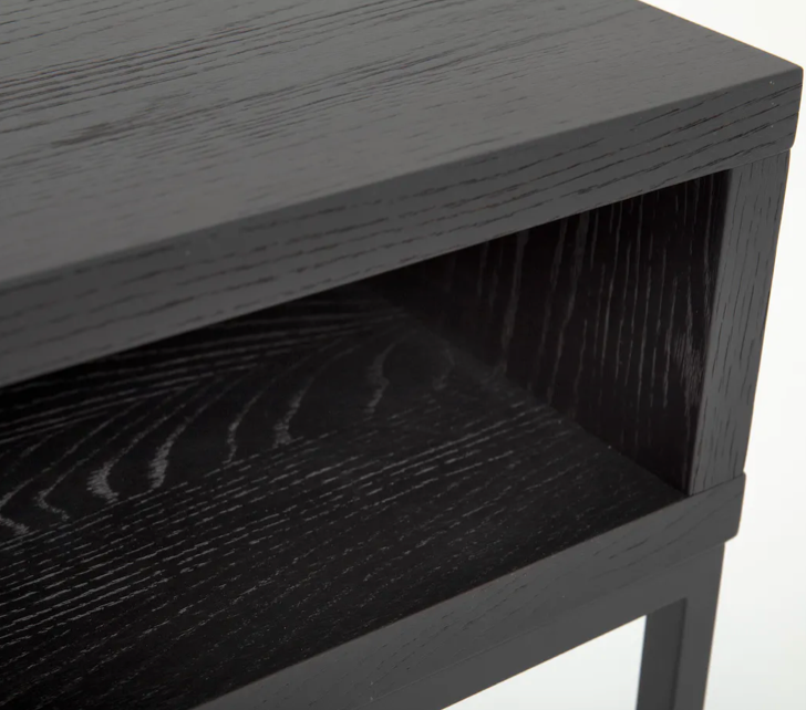 Der Flamant Konsolentisch ARMAND aus der gleichnamigen Kollektion verkörpert zeitlose Eleganz und erstklassige Handwerkskunst. Hergestellt aus hochwertiger schwarzer Eiche und Metall, vereint dieses Möbelstück Funktionalität mit ästhetischem Design.