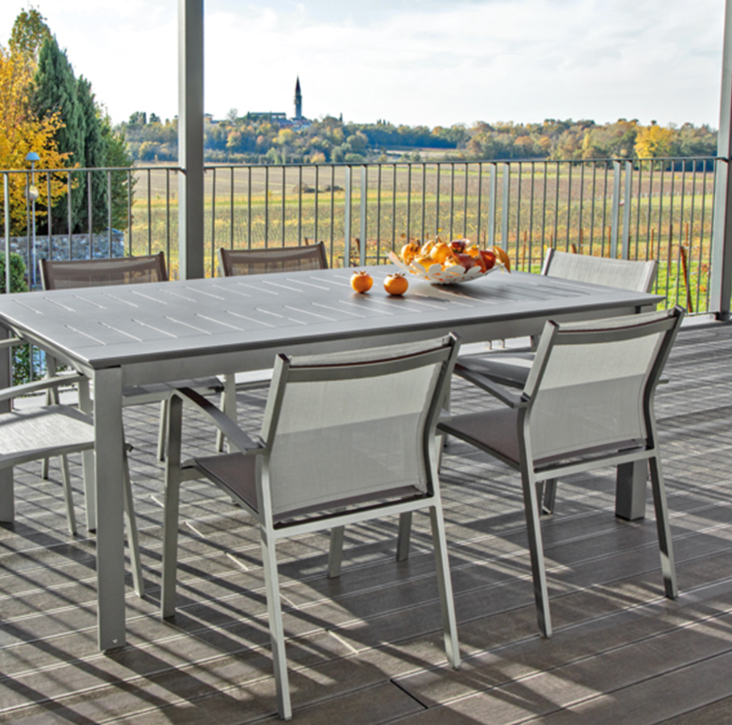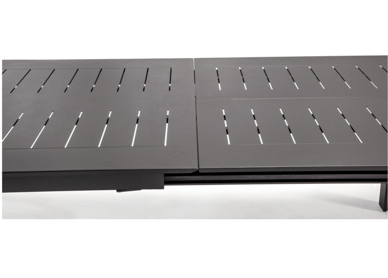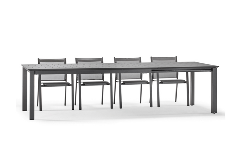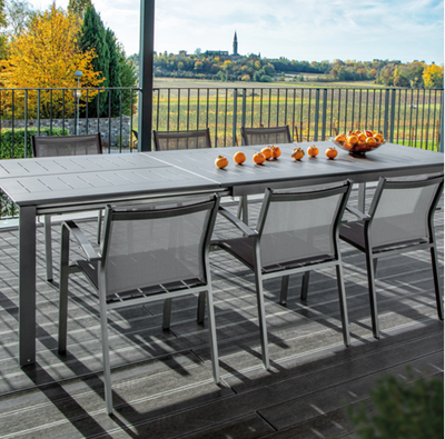"Der Grattoni Gartentisch Panarea 160 ist eine Investition in zeitloses Design und innovative Funktionalität. Dieser ausziehbare Tisch, gefertigt aus lackiertem Aluminium mit einer 5 mm starken Aluminiumoberfläche, bietet eine widerstandsfähige und zugleich elegante Lösung für Speise- und Arbeitsbereiche. Die Möglichkeit, ihn auf bis zu 240 cm zu erweitern, macht ihn zum idealen Möbelstück für Gastgeber und Familien. Mit den neutralen Farboptionen Weiß und Anthrazit passt er in jedes Raumkonzept und jede Einrichtung."