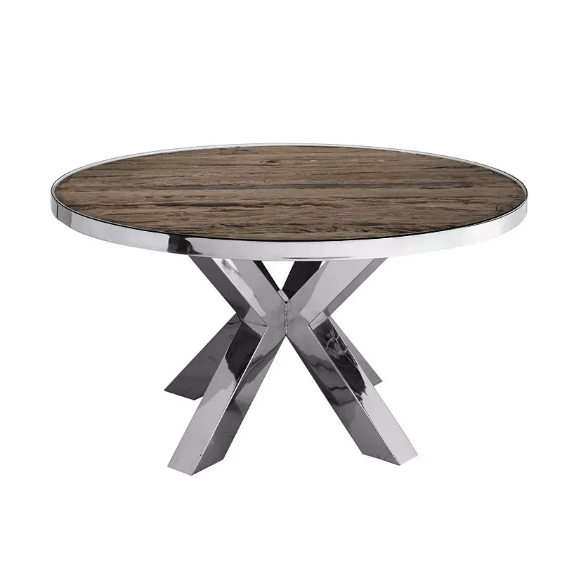 Der Hazenkamp Esstisch Mariano verbindet klassische Eleganz mit modernen Akzenten. Die runde Tischplatte aus Holz in einem warmen Braunton ruht auf einem markanten X-Bein-Gestell aus Metall in Silber, das dem Tisch eine stilvolle und stabile Basis verleiht. Mit seinen großzügigen Maßen von 140 x 140 x 76 cm (B x T x H) bietet er ausreichend Platz für gesellige Runden im Esszimmer. Die harmonische Farbgebung aus Schwarz, Silber und Braun macht ihn zum perfekten Mittelpunkt klassischer und moderner Wohnstile.