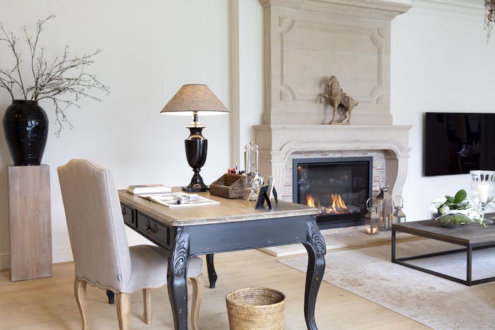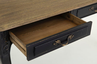Dieser Schreibtisch lässt sich hervorragend mit klassischen Bürostühlen aus Leder oder Stoff kombinieren. Dekorative Elemente wie Holzregale, Tischlampen aus Metall oder Pflanzen verleihen Ihrem Arbeitszimmer zusätzlichen Charakter und Harmonie.