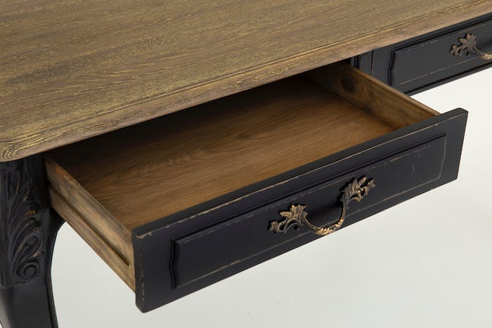 Der Foubert Schreibtisch von Flamant vereint klassisches Design mit praktischen Features und ist die perfekte Ergänzung für jedes Arbeitszimmer. Mit seiner robusten Konstruktion aus hochwertiger Eiche und vielseitigen Details wie den flexibel anbringbaren Schubladen links oder rechts, bietet dieser Schreibtisch nicht nur optische Eleganz, sondern auch Funktionalität für den modernen Arbeitsplatz.