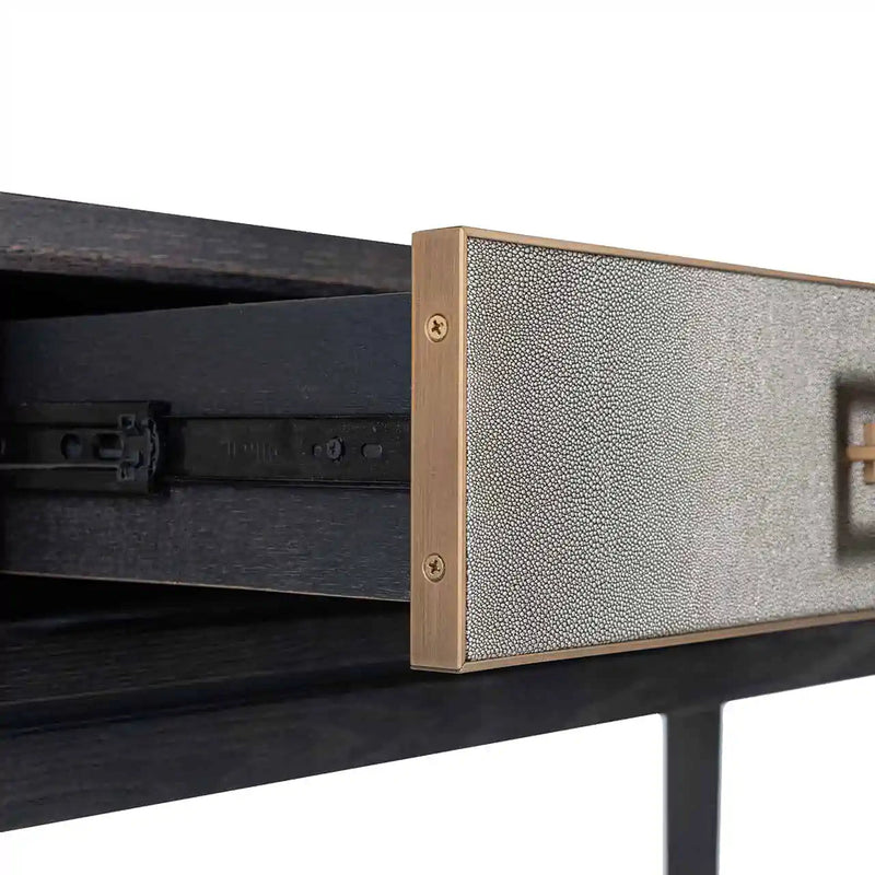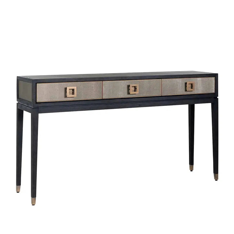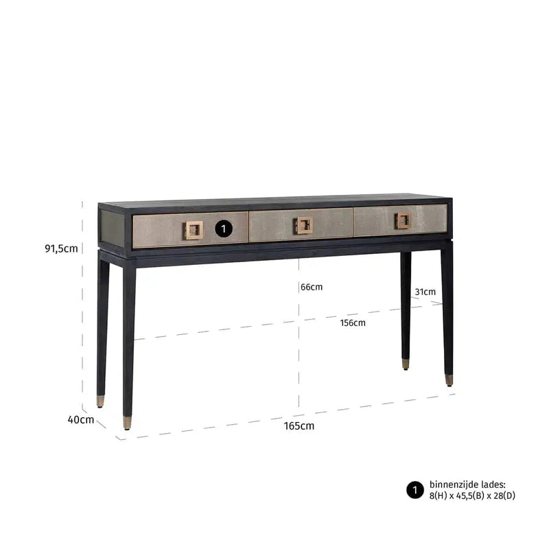 Die Bloomingville Konsolentische von Richmond Interiors sind ein Meisterstück handwerklicher Kunst. Jeder Tisch wird individuell und mit größter Sorgfalt von Hand gefertigt, was ihn zu einem einzigartigen Schmuckstück in Ihrem Zuhause macht. Diese Konsolentische fangen den Geist des modernen Wohnens ein, indem jedes Stück seine eigene unverwechselbare Verarbeitung und Detaillierung erhält. Mit einer Höhe von 91,5 cm, einer Breite von 165,0 cm und einer Tiefe von 40,0 cm bieten diese Tische nicht nur funktionalen Nutzen, sondern auch ästhetischen Mehrwert. Gefertigt aus Eichenfurnier, PU Leder und Metall in der Farbe Gold, sind sie die perfekte Ergänzung für jeden Wohnraum, der Eleganz und modernes Design vereint.