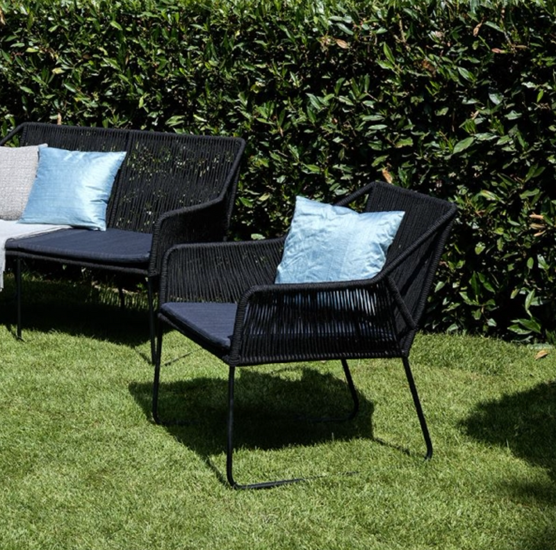 Der Lambert Amaya Outdoor Lounger vereint modernes Design mit höchstem Sitzkomfort und ist die ideale Ergänzung für Garten, Terrasse oder Balkon. Das pulverbeschichtete Stahlrohrgestell in elegantem Schwarz sorgt für Stabilität und Langlebigkeit, während das Geflecht aus strapazierfähigem 'Fish Net Rope' nicht nur optisch überzeugt, sondern auch wetterbeständig ist. Die überkreuzte Flechtung der Sitzfläche bietet zusätzlichen Halt und Komfort. Dank seiner Leichtigkeit ist der Lounger einfach zu handhaben und bei Bedarf stapelbar, was für Ordnung und Platzersparnis sorgt. Die mitgelieferte Polsterauflage ist ebenfalls für den Außenbereich geeignet und hält auch einem Regenschauer stand.