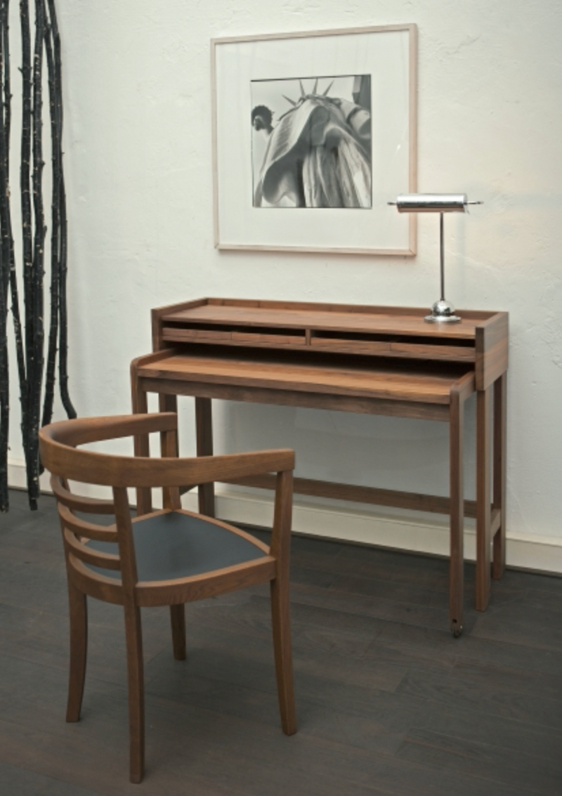 - Design und Stil: Elegantes Schreibmöbel, bester handwerklicher Verarbeitung, klare Formen, dunkel gemasertes Walnussholz