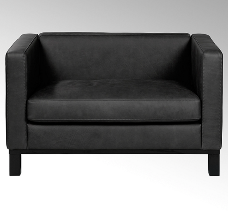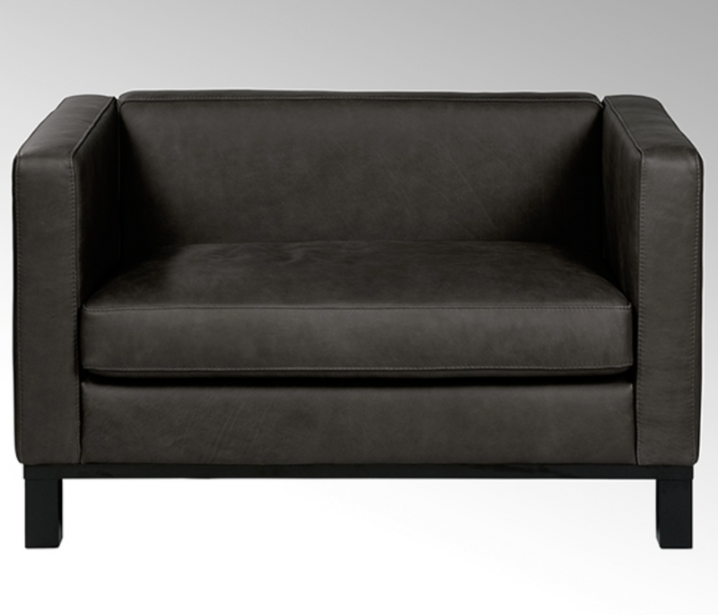 Material: festbezogen mit Leder Santa Fe, inkl. 1 Sitzpolster, Rahmen und Füße Massivholz gebeizt, schwarz