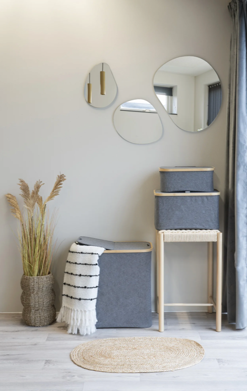 - Design und Stil: Korb aus Bambus und Textil in dunkelgrauer Farbe