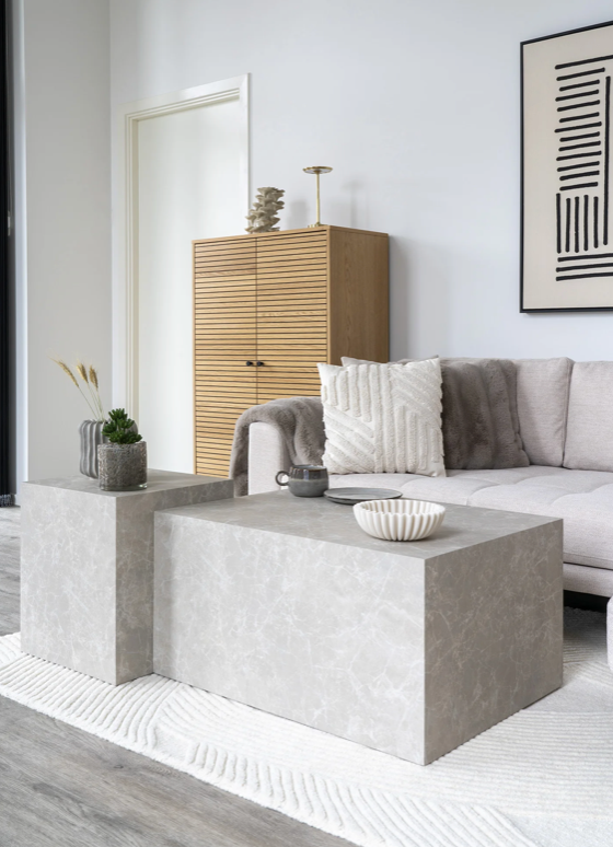 Der Matera Couchtisch Elena präsentiert sich mit einem zeitlosen und eleganten Design. Seine Oberfläche in Marmoroptik verleiht Ihrem Wohnzimmer eine luxuriöse Atmosphäre, während das MDF-Material mit Dekorpapier eine solide und langlebige Konstruktion gewährleistet. Mit seinen kompakten Abmessungen passt dieser Tisch perfekt in Wohnzimmer verschiedener Größen und bietet genügend Platz für Ihre Getränke, Bücher oder Dekorationen. Sein modernes Erscheinungsbild und die attraktive Farbe machen ihn zu einem Blickfang in jedem Wohnraum.