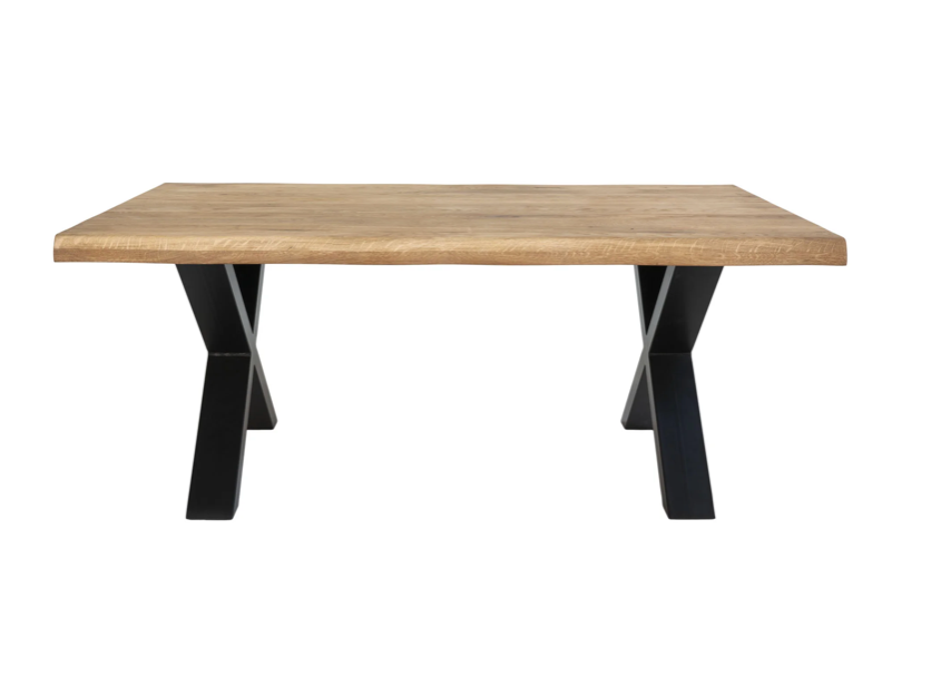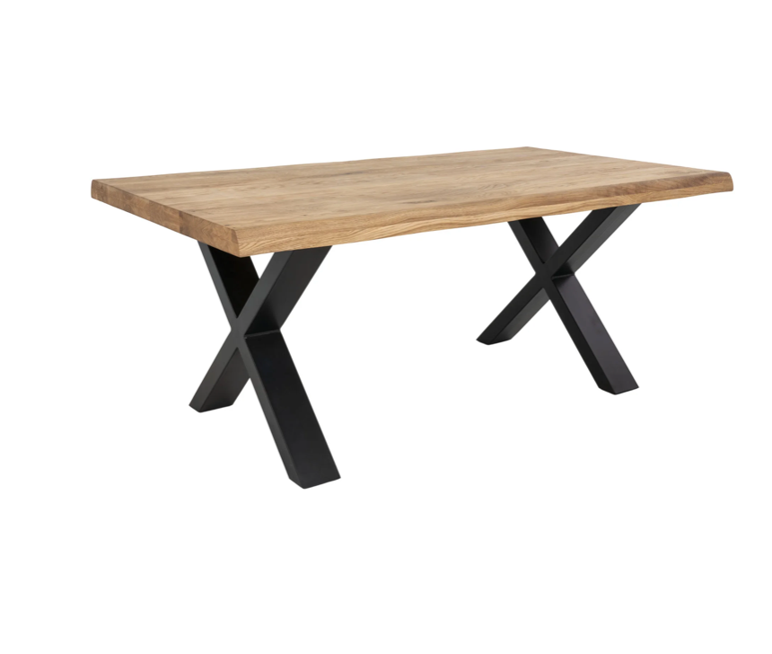 - Design und Stil: Kaffeetisch mit geölter Eichenholzplatte und welligem Rand, Stahlbeine