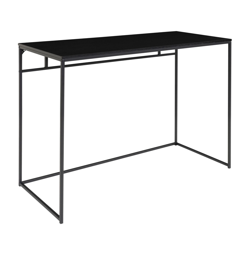 - Design und Stil: Schreibtisch mit schwarzem Rahmen und schwarzen Metallbeinen