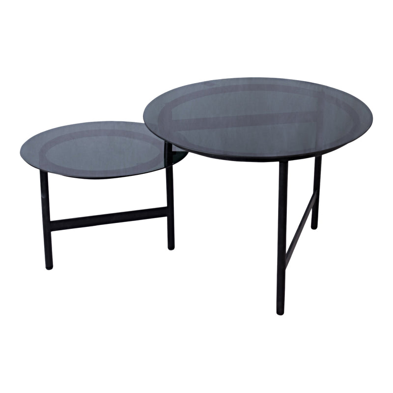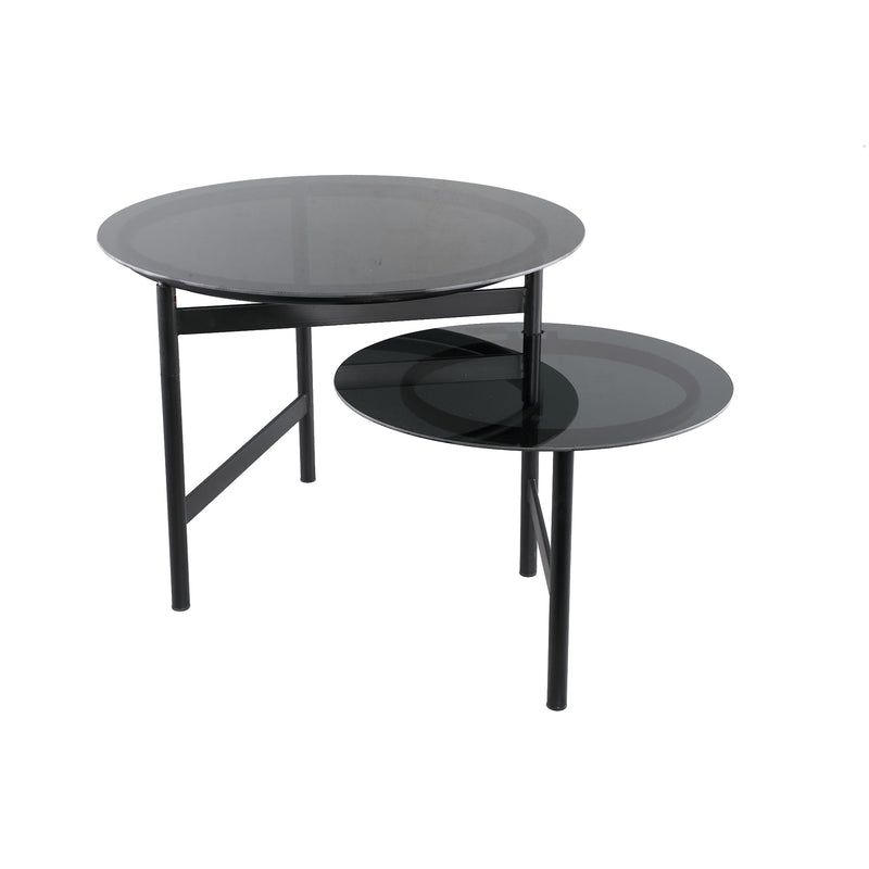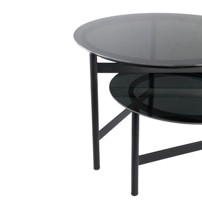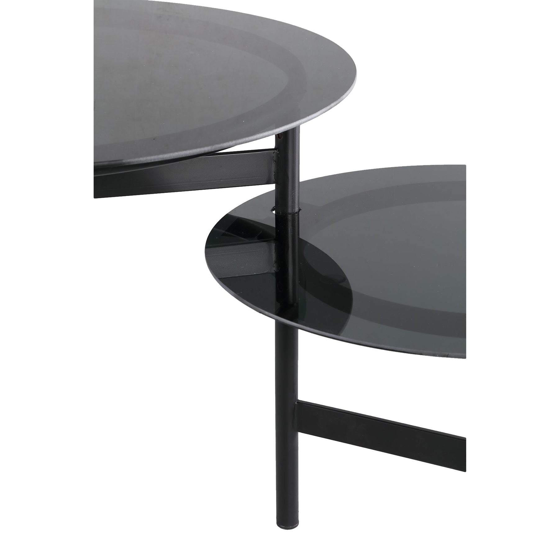 PTMD Waze Couchtisch aus schwarzem Eisen, runde Glasplatte