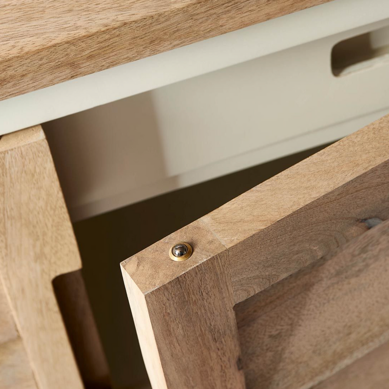 Ein Sideboard ist ein Must für jedes Interieur. Ob im Wohnzimmer, Esszimmer oder Schlafzimmer - diese Pracht entfaltet überall eine stilvolle, warme Wohnatmosphäre. Dieser Schrank ist aus Mangoholz gefertigt, einer besonders langlebigen Holzart. Die Kommode von Riviera Maison bietet großzügigen Stauraum zur Aufbewahrung von allerlei Accessoires. Die geschlossenen Türen bieten die Möglichkeit, besonders viele Utensilien außer Sichtweite unterzubringen.
