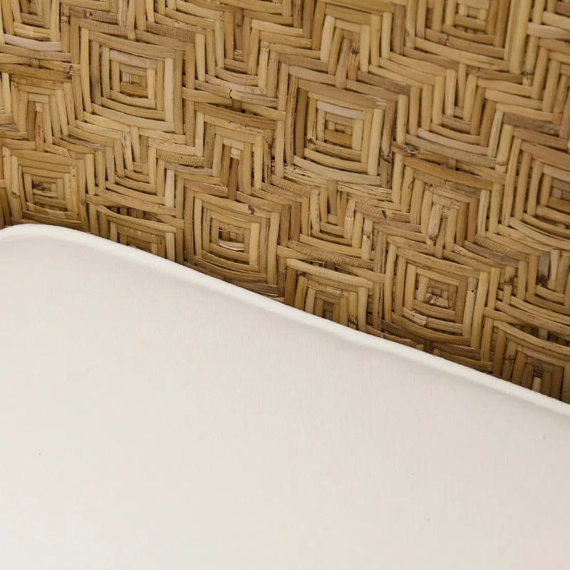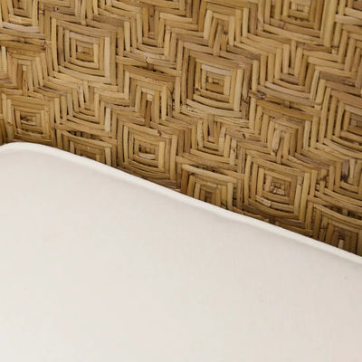 - Material & Farbe: Rattan Peel, Baumwolle (Weiß), Ledergriff