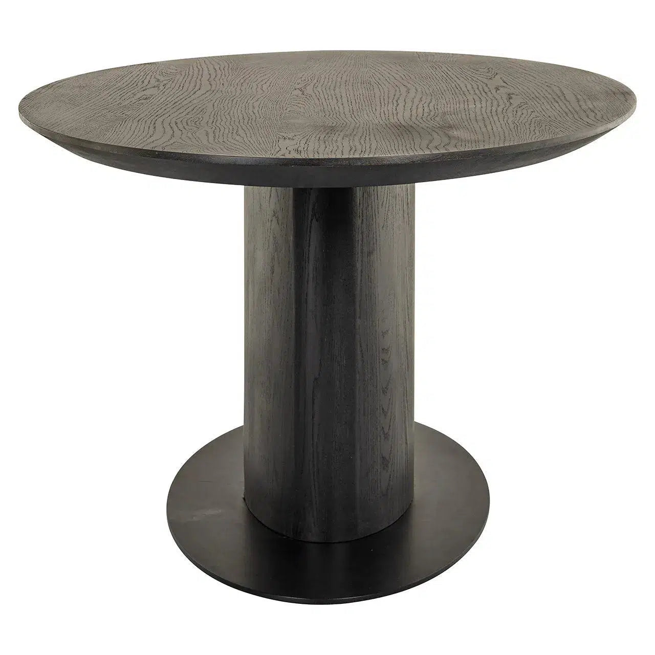 - Дизайн и стиль: Современный, минималистский обеденный стол с овальной столешницей и массивной центральной колонкой