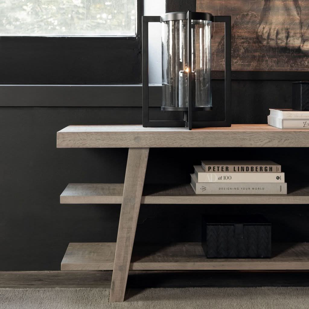 Консоль Весна В цвете Сильверстоуна современный стиль сочетается с вневременной элегантностью. Сделанный из твердого деревенского дуба, он придает каждой комнате очаровательную атмосферу и обеспечивает стабильность и силу с его надежными ногами. Деревенская поверхность и натуральное зерно создают теплую и привлекательную атмосферу, идеально подходящую для гостиной или столовой.