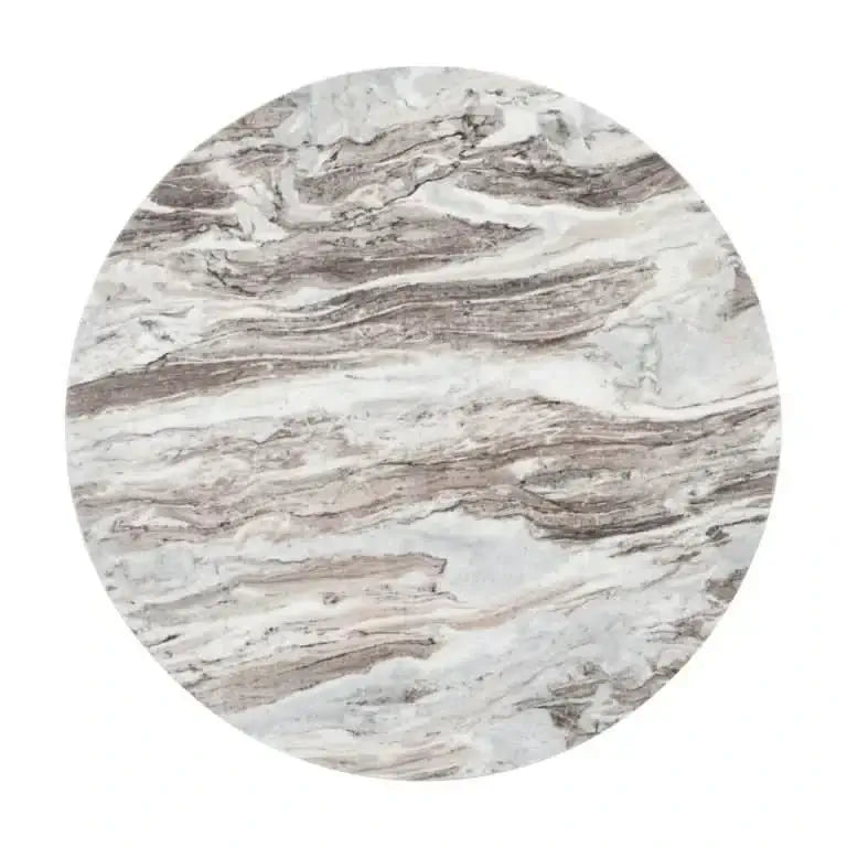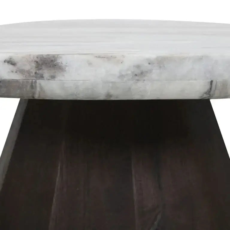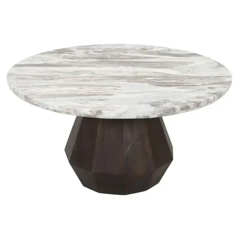 Компактный, мощный, роскошный: Table de Salon Оберой от Richmond Interiors Приносит натуральные материалы и скульптурные дизайны в гармонии. Благородный Мраморная столешница Торонто С его уникальным зерном, каждая комната дает характер и элегантность, в то время как геометрический Поддержка из твердой манго образует теплый контраст в темно -коричневом.