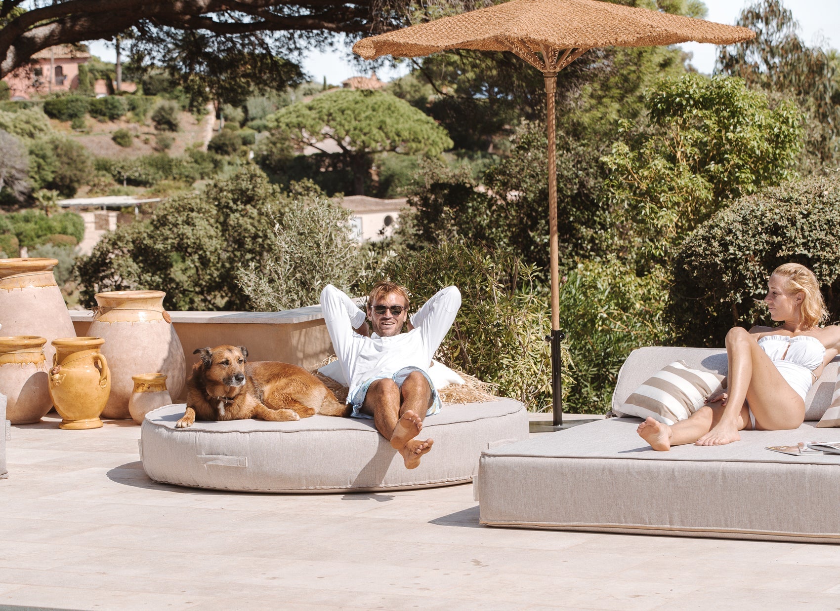 MXHOME Sonnenliege rund Grauer Leineneffekt - Outdoor-www.Stil-Ambiente.de-Lit rond - Lin gris BLG3