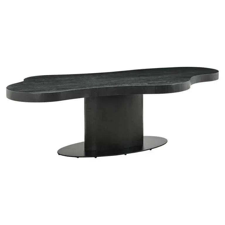 А Richmond Interiors БОГОРНЫЙ СТОЛОВНЫЙ СТАЛ В стильном цветовом варианте Dark Coffee предлагает современный дизайн в двух вариантах размера - 225 см и 260 см в ширину. Стол состоит из высококачественного дубового шпона и фанеры, что означает, что он имеет надежную и прочную конструкцию. Темный цвет «Темного кофе» придает ему благородный и вне времени вид, который идеально интегрируется в современную и роскошную столовую. Обеденный стол впечатляет с его органической формой и его щедрыми размерами, которые предлагают достаточно места для больших семейных блюд или общительных вечеров.