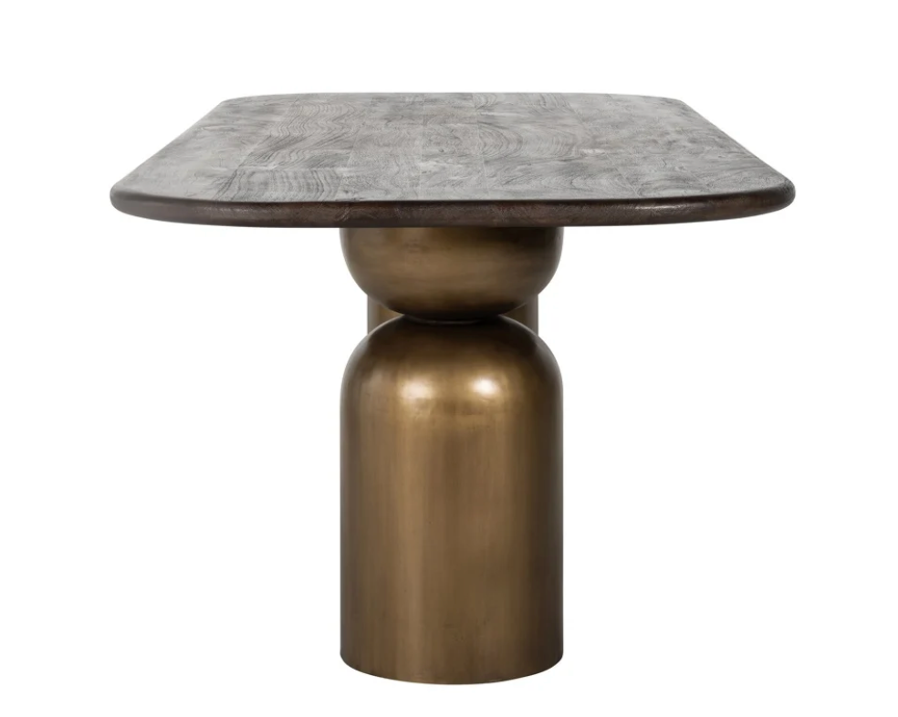 А Richmond Interiors Обеденный стол Cavo 230 это стильный центр для каждой столовой. С его щедрыми измерениями 230x100x78 см Он предлагает достаточно места для еды и общительных вечеров. Сделано из высокого качества Acaciae и стабильный Железные ноги в латуни, объединяет этот обеденный стол элегантность с промышленным очарованием. Его надежный дизайн и благородная комбинация материала делают его прочным и впечатляющим предметом мебели.
