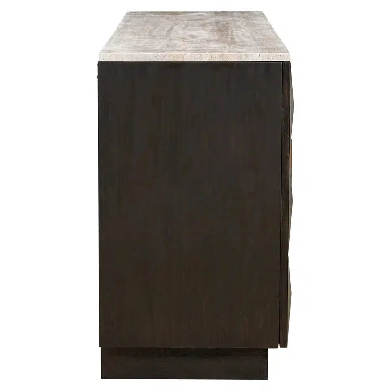 КАК Richmond Interiors Спотешник Claremont (4-дверный, коричневый) впечатляет своим поразительным, геометрическим дизайном и высококачественными материалами. Передняя часть буфеты разработан с поразительными, трехмерными геометрическими узорами, изготовленными из дубового шпона, в то время как каменная плита предлагает элегантный контраст. С большим количеством места для хранения за четырьмя дверями, этот предмет мебели идеально подходит для современной гостиной или столовой и предлагает как стиль, так и функциональность.