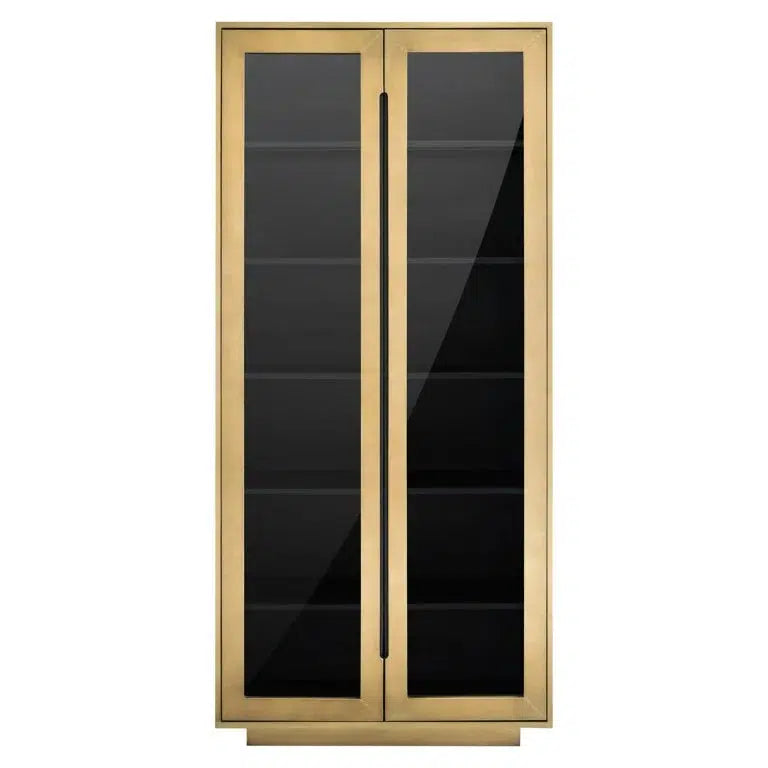 Этот шкаф идеально вписывается в гостиную и столовую или офисы. Благодаря своей латунной облицовке, стеклянным дверям и стеклянным полам, он предлагает стильные варианты презентации. Двери мягкого кольца обеспечивают дополнительный комфорт. Объедините этот шкаф с темными оттенками или контрастным белым, чтобы усилить роскошный эффект.