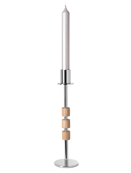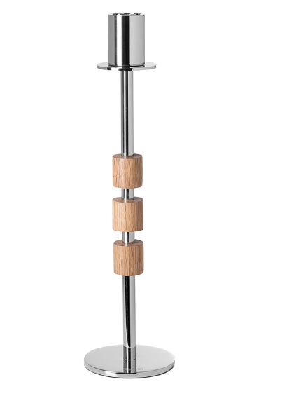 А Портеро подсвечник В глянцевом коричневом и серебре элегантный домашний аксессуар сочетает в себе современный дизайн с высококачественным мастерством. Изготовленная из дуба, алюминия и нержавеющей стали и предоставленной с никелевой поверхностью, он впечатляет высотой 36 см и диаметром 9 см. Подходит для прилипания свечей диаметром 3 см, это обеспечивает стильные легкие моменты в каждой комнате.